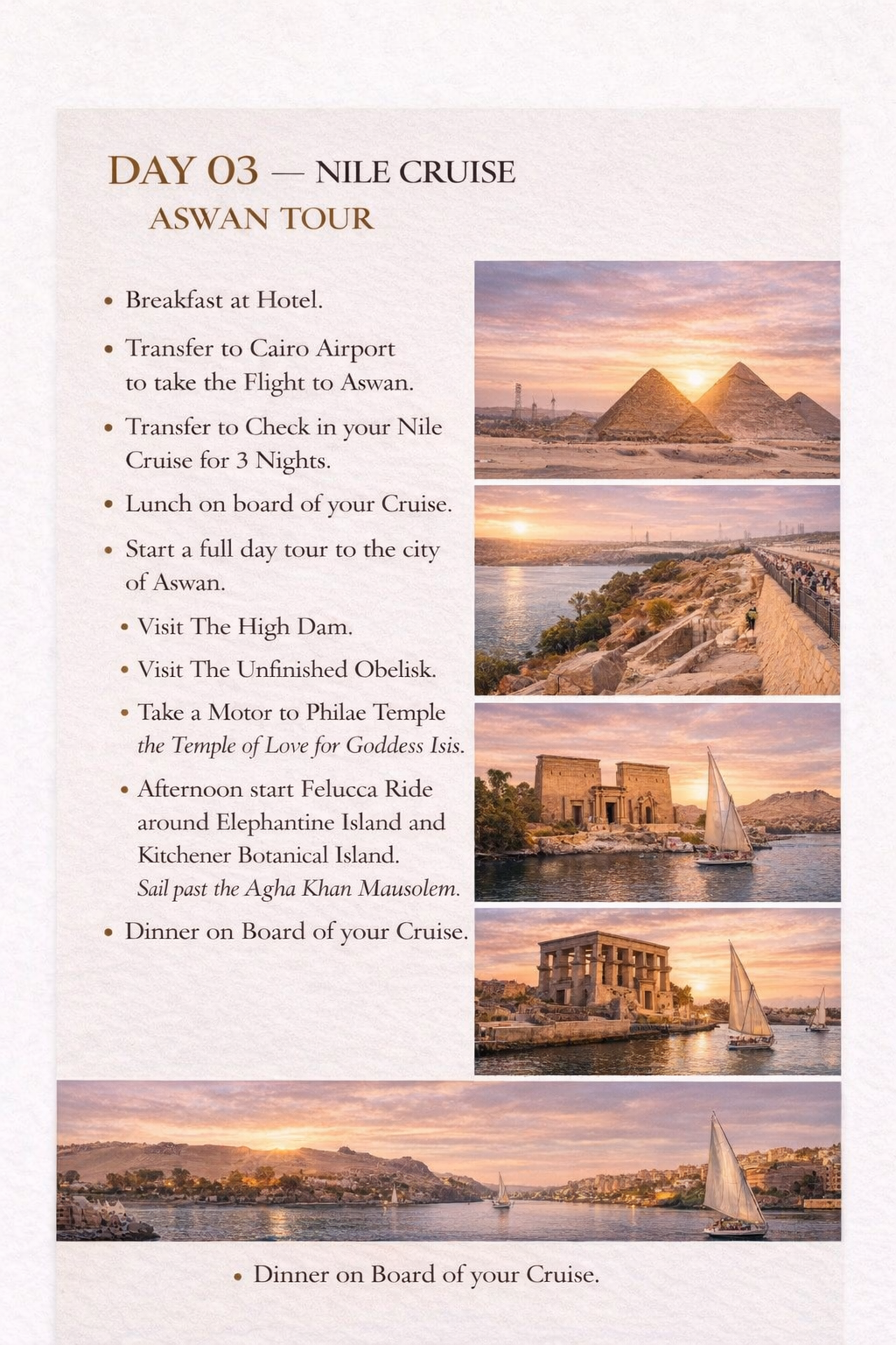 - Scopri i punti salienti di Assuan, tra cui la Diga di Assuan, il Tempio di Philae e una crociera in feluca sul Nilo