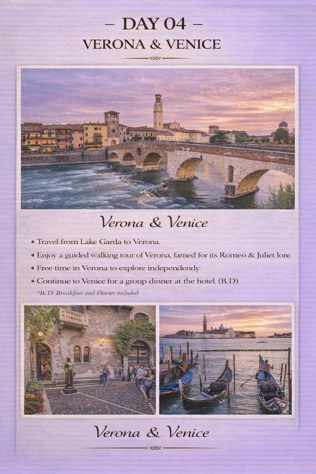 - Walking tour of Verona, the setting of Romeo & Juliet