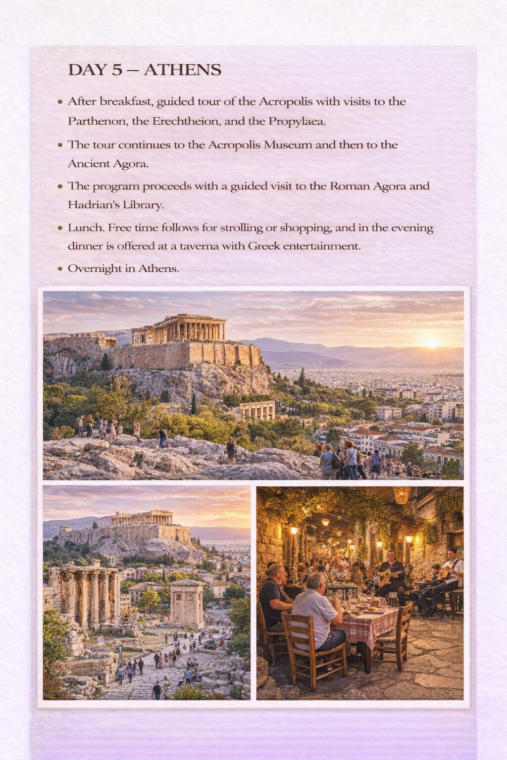 - Atina'da kapsamlı gezi programı: Akropolis, Akropolis Müzesi, Antik ve Roma Agorası