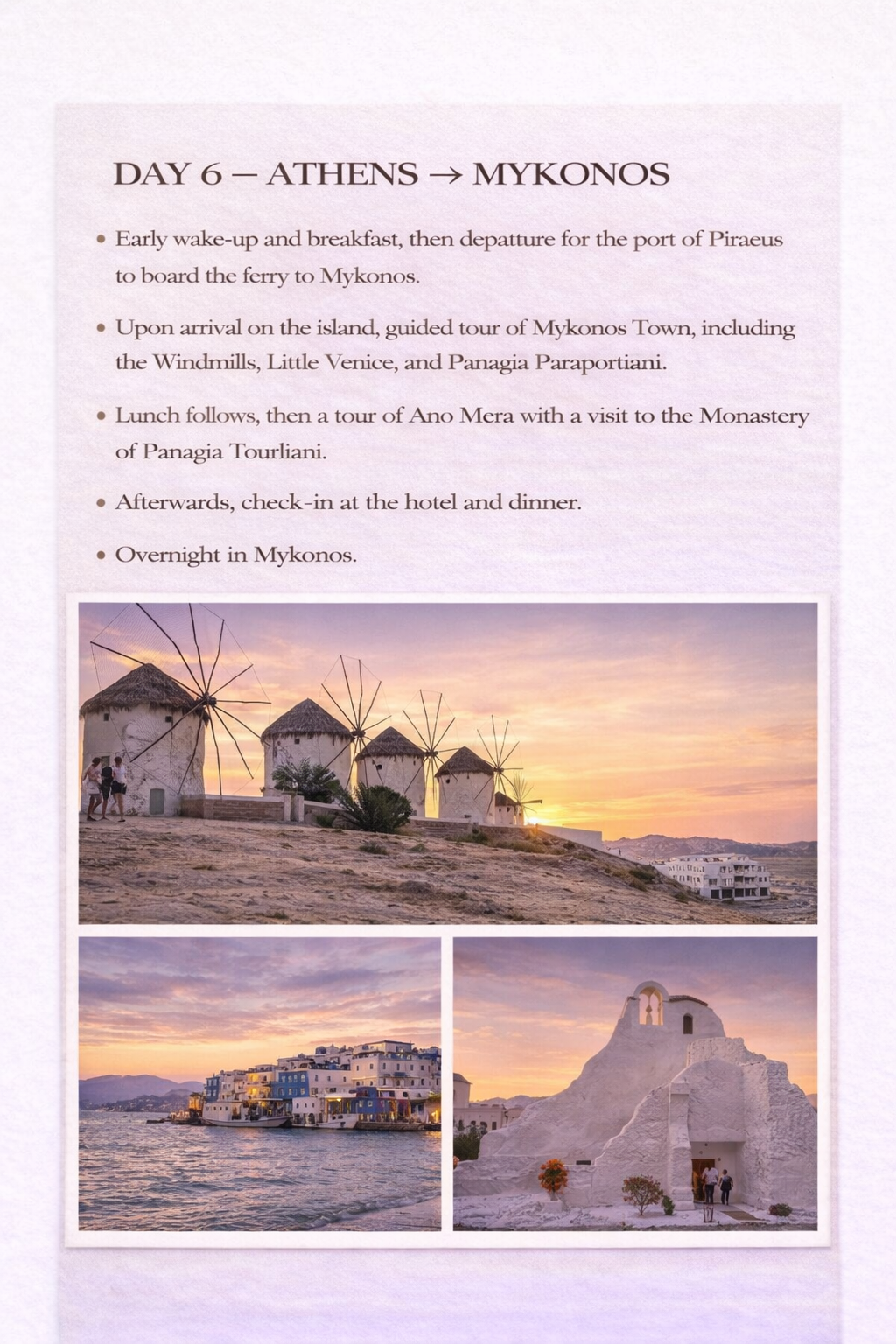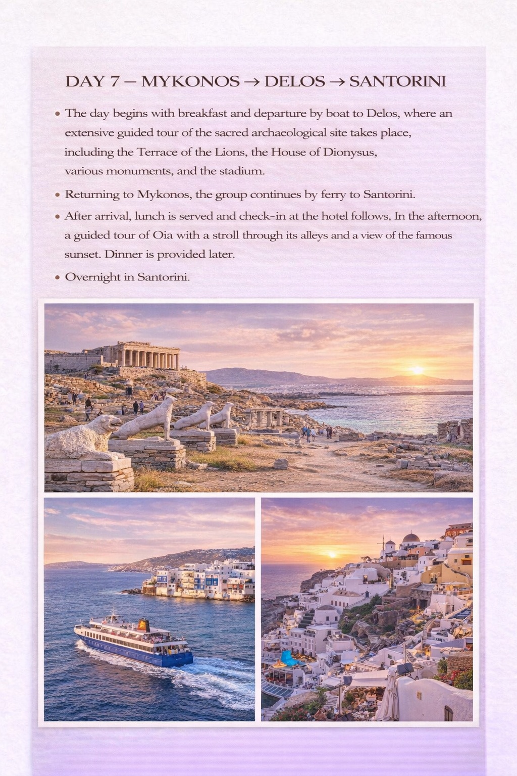 - Rehber eşliğinde ada turu ile Mykonos'a feribot yolculuğu.