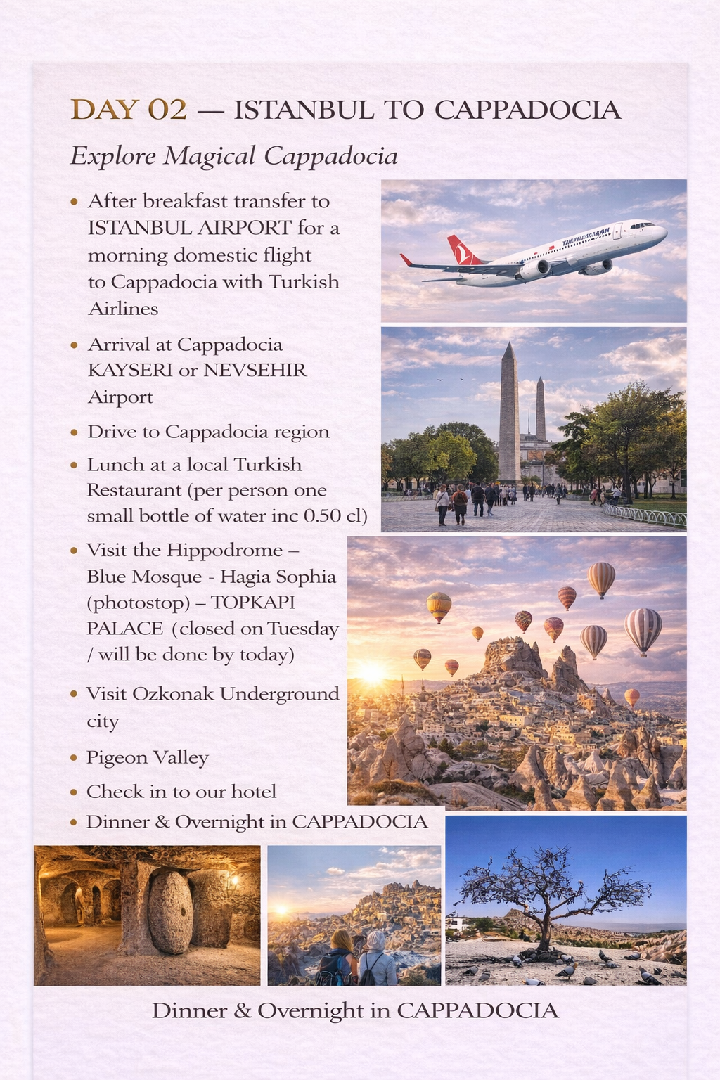 - Cappadocia: HB (Half Board)