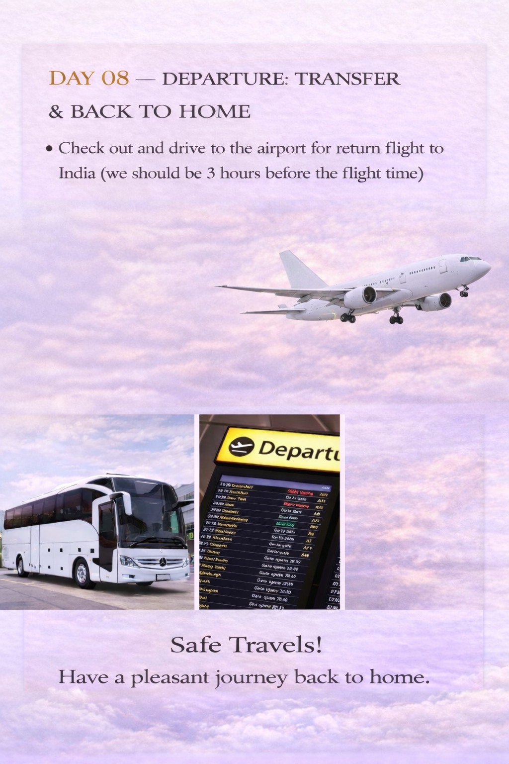 - All airport arrival & departure transfers with modern A/C coaches